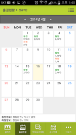 캘린더로 출결현황을 관리 할 수 있습니다.