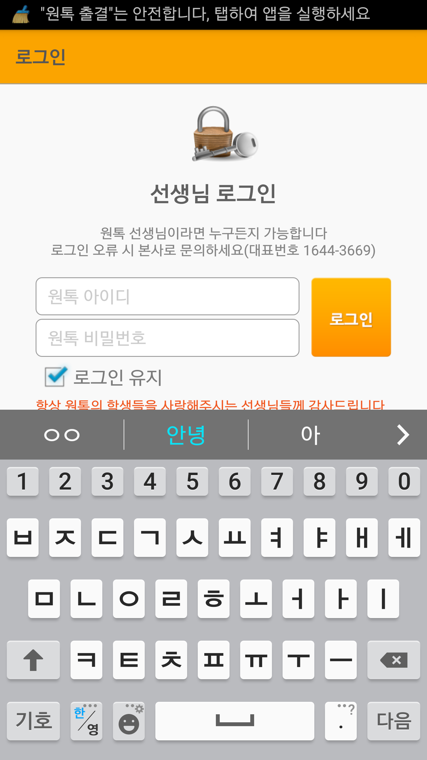 바탕화면에 "원톡 출결" 이설치되었습니다.