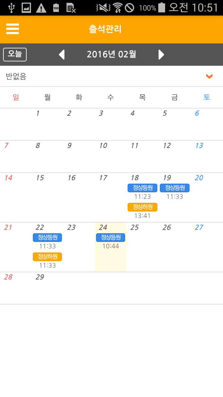 출결체크 한 경우 하원체크 됩니다.